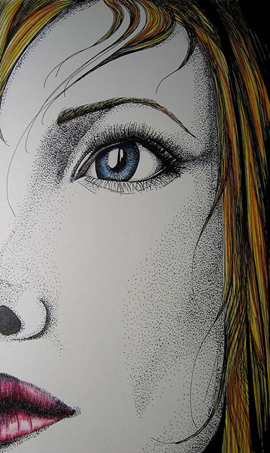 "Lady Face" - pen and ink with colored pencil on illustration board